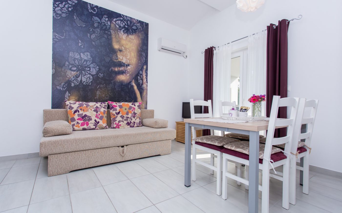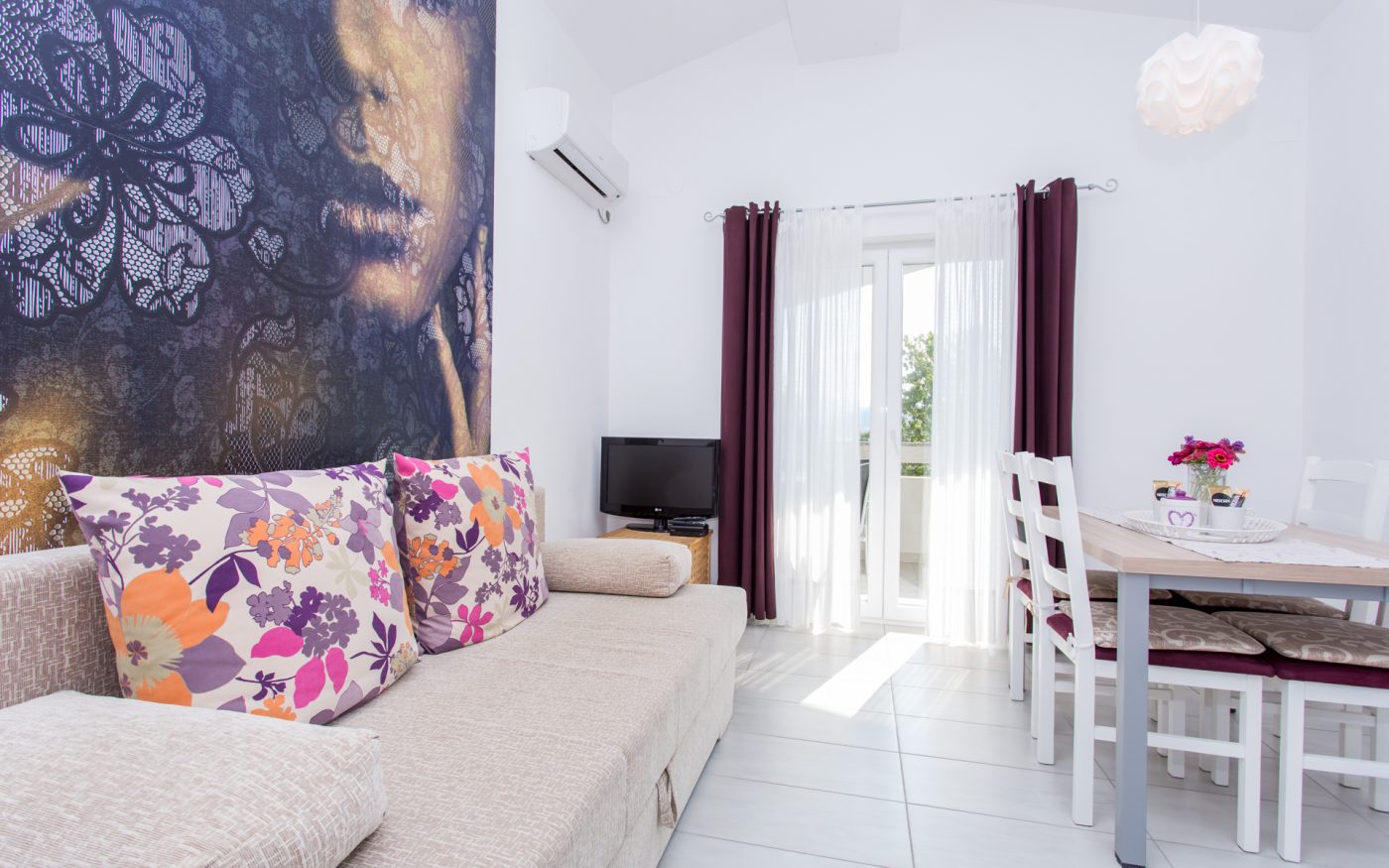 kauč na rastezanje, LED Sat-TV, klima uređaj, besplatni WI-FI internet.